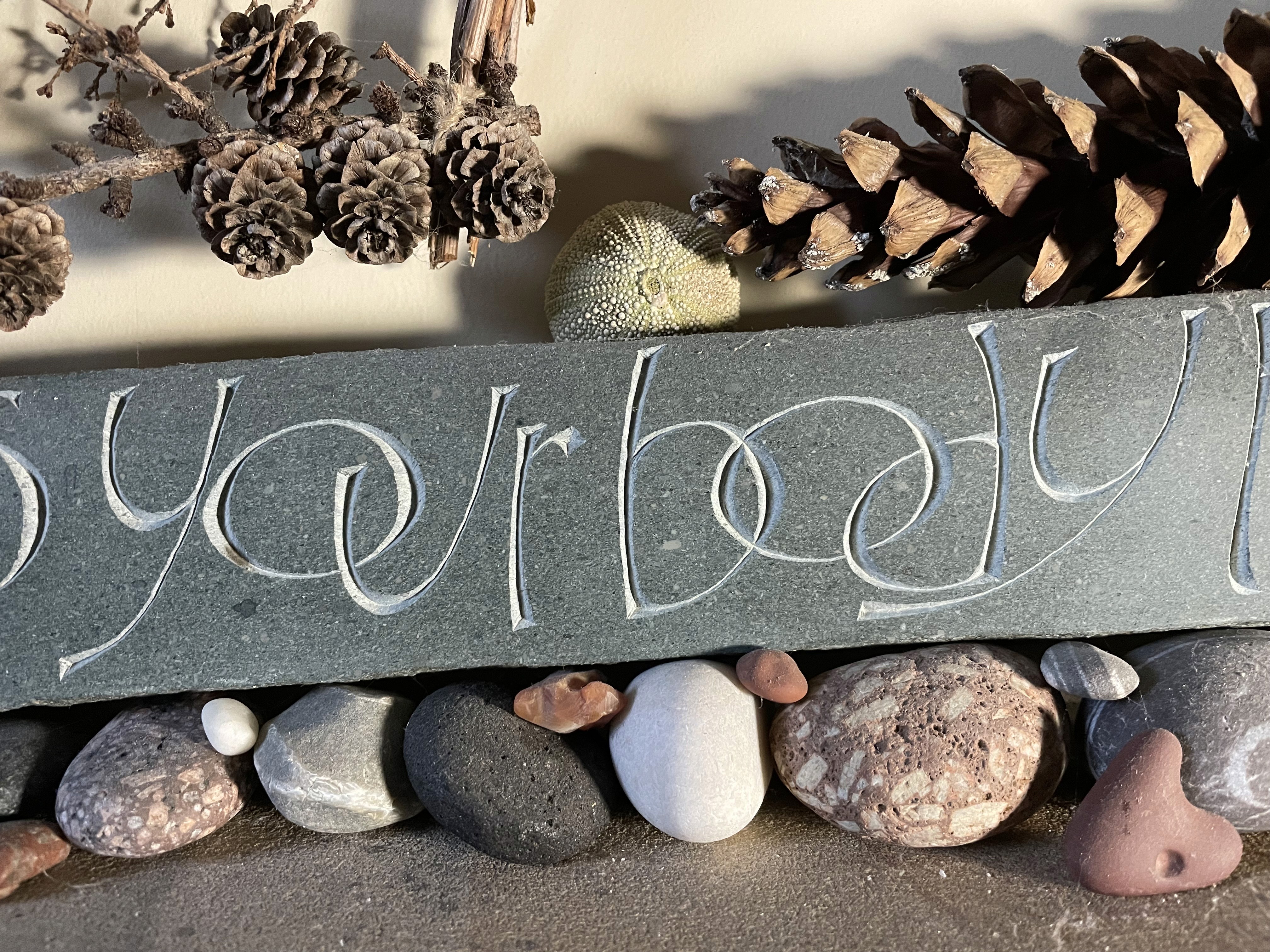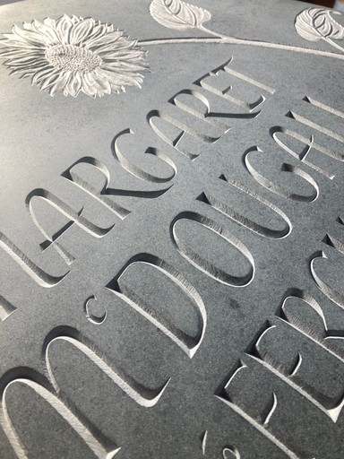 Hand-cut inscriptions are exceptional in their expressive potential. Letters carved with mallet and chisels respond uniquely to light and shadow and allow for great subtlety in their design. As lettering artists and craftspeople, we aim, through rhythm, spacing and composition, to achieve a total integration of the design, process and choice of material, with the purpose and proposed location of the piece.