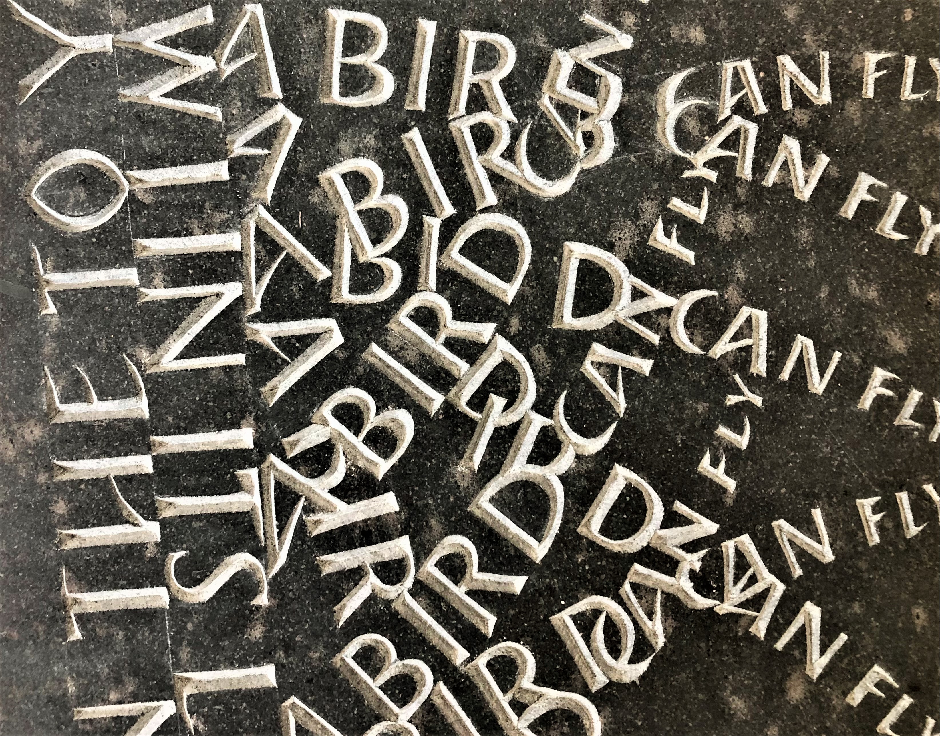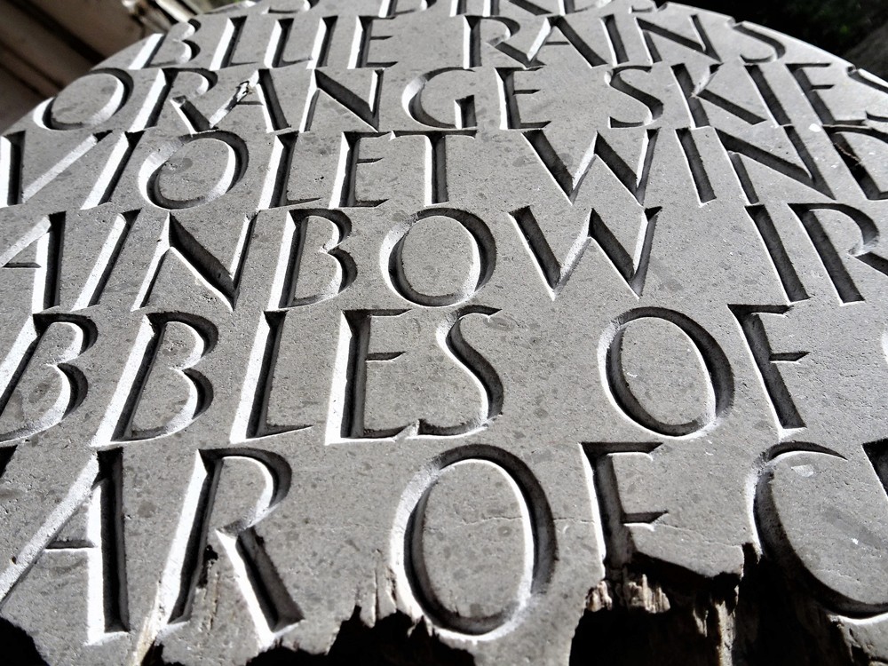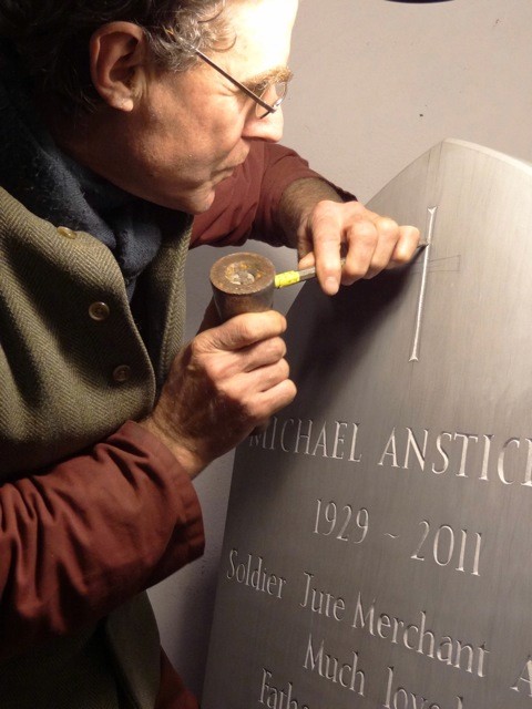 Alex Holmes has been carving letters in stone since 2000. He lives and works near Arbroath in Angus.